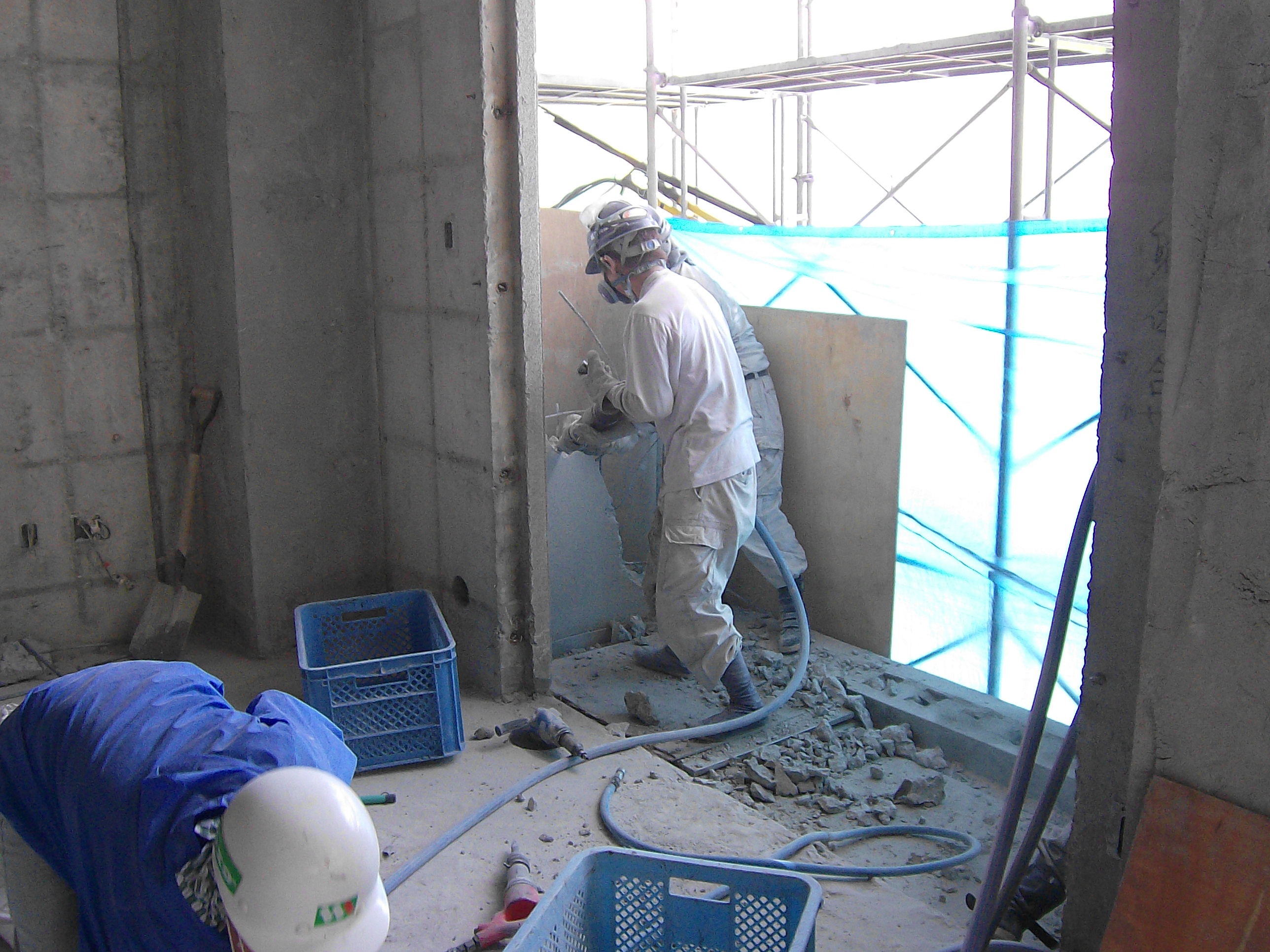 ショッピングモールでの斫り工事(翌日も営業しています)